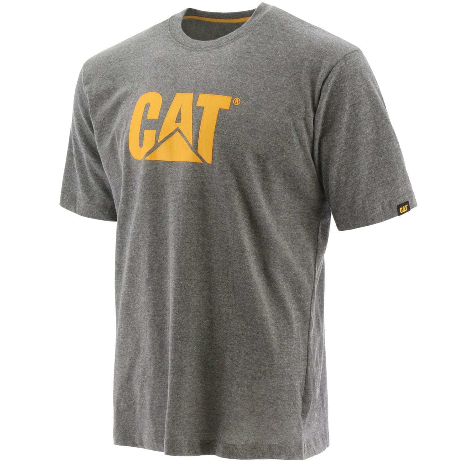 Klasyczna koszulka robocza CAT Trademark Logo w jednolitym kolorze, ozdobiona jest kontrastowym logo na piersi oraz naszywką z logotypem producenta na rękawie.