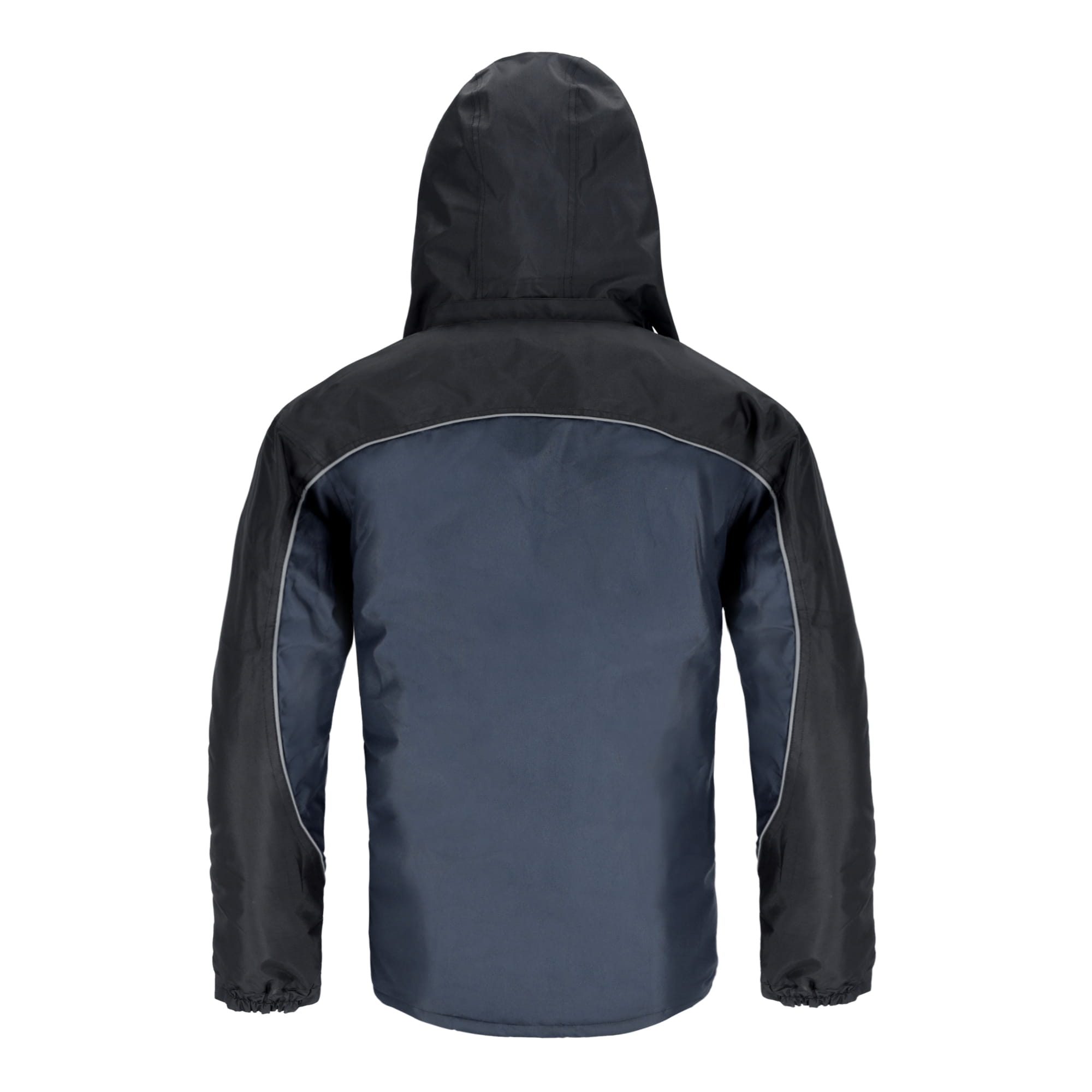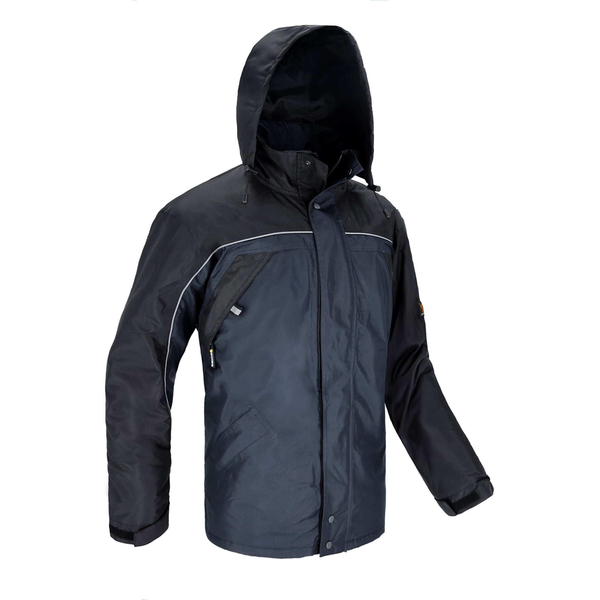 Wygodna kurtka ocieplana z pikowaną poliestrową podszewką oraz wytrzymałą warstwą zewnętrzną, wykonaną w 100% z impregnowanego poliestru.