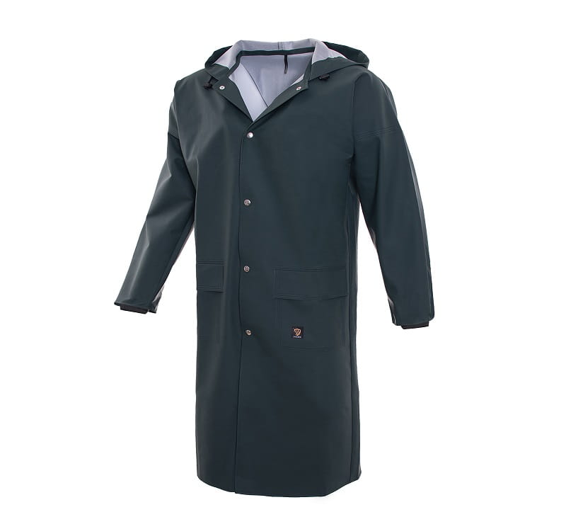 Płaszcz wodoochronny wykonany z tkaniny Probaltic (dzianina poliestrowa powlekana polichlorkiem winylu), o masie powierzchniowej 350 g/m2 – odpornej na zginanie w niskich temperaturach (do – 50 st C).