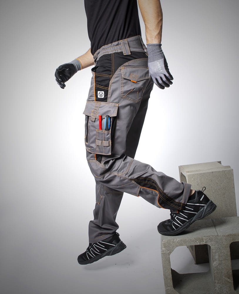 Szare spodnie robocze do pasa – niezawodny komfort i pełna swoboda ruchów w pracy