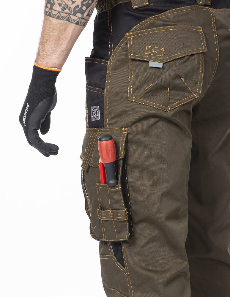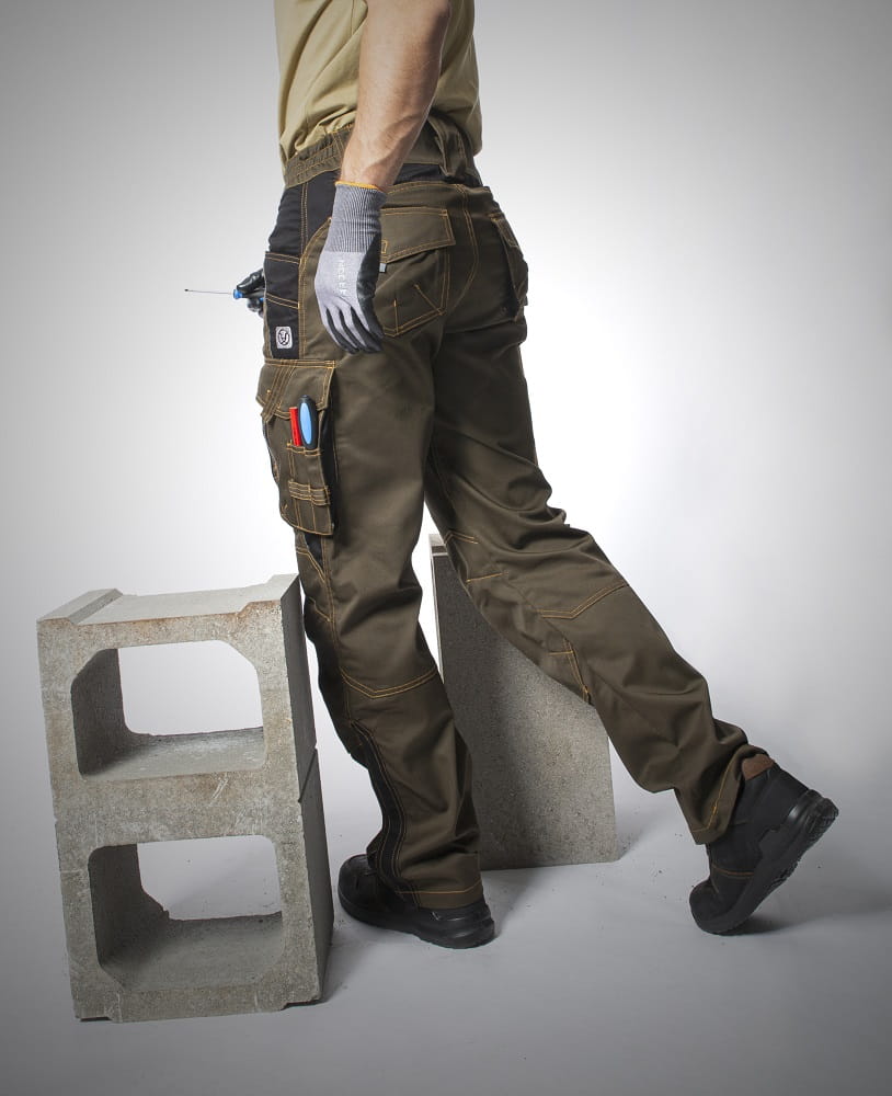 - GOTOWE NA NAKOLANNIKI - profilowane kolana z podwójnego materiału i wsuwanymi kieszeniami drastycznie ułatwiają prace posadzkarskie i monterskie.