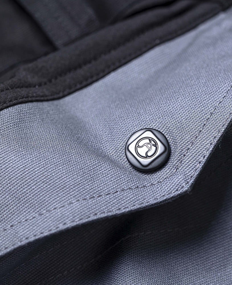 • strefa kolan wzmocniona podwójną warstwą wytrzymałego materiału Oxford z hydrofobowym wykończeniem, z kieszeniami na nakolanniki